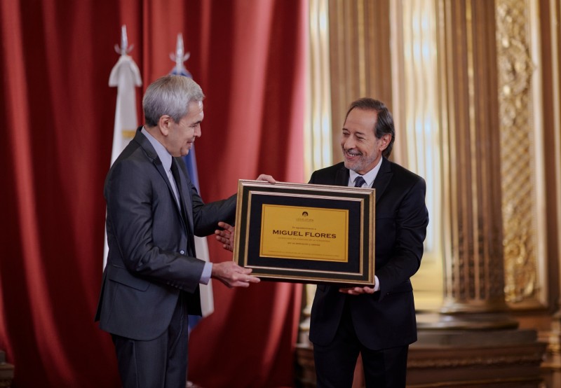 En el Salón Dorado de la Casa de la Cultura (ex-edificio del diario La Prensa) Miguel Torres recibe un reconocimiento por su trabajo (Imagen: Gentileza de Netflix)